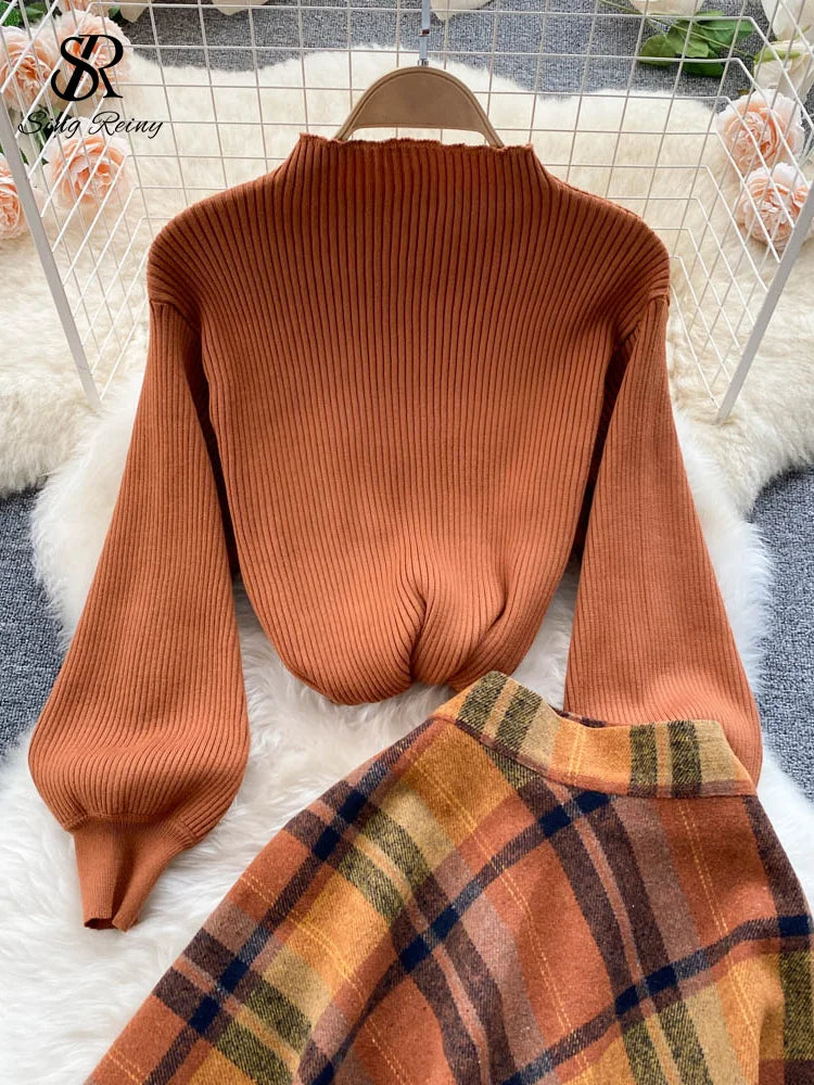 Dark Academia Retro Sweater Set - Knit Top Long Skirt
