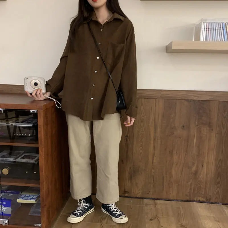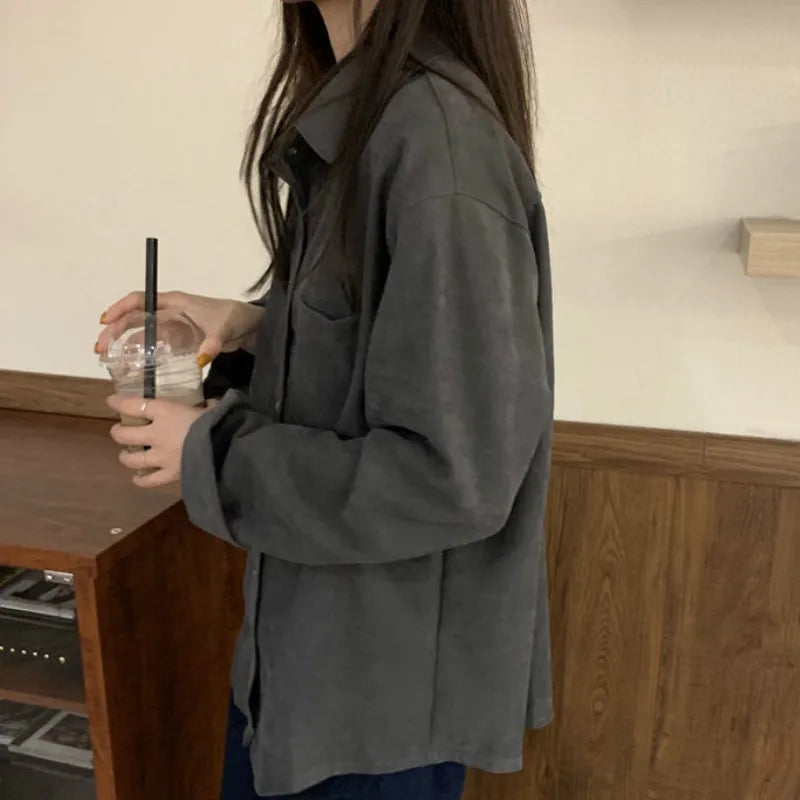 Dark Academia Solid Pocket Shirt - Loose Casual